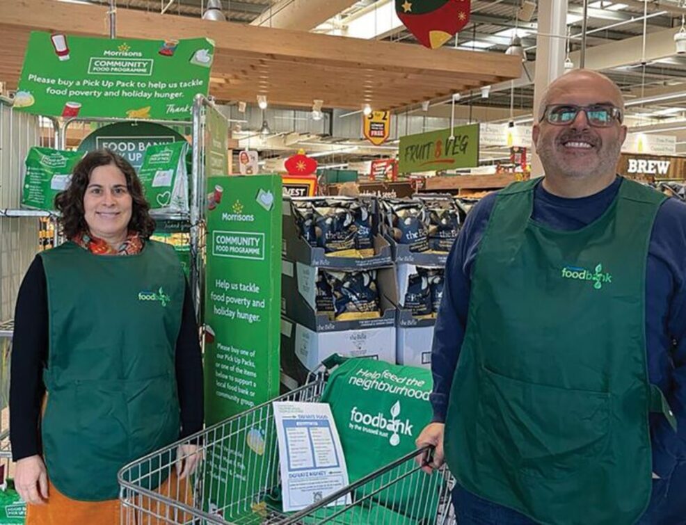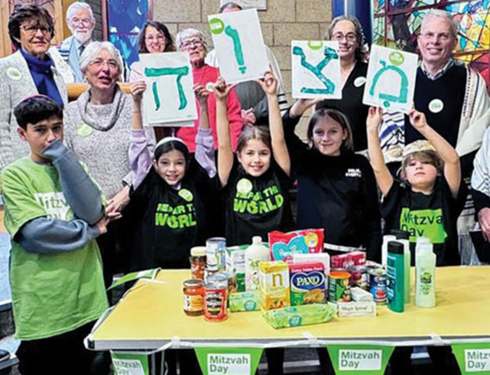 Foto’s tonen vrijwilligers die deelnemen aan een ‘mitswa-dag’-activiteit ter ondersteuning van een voedselbank.